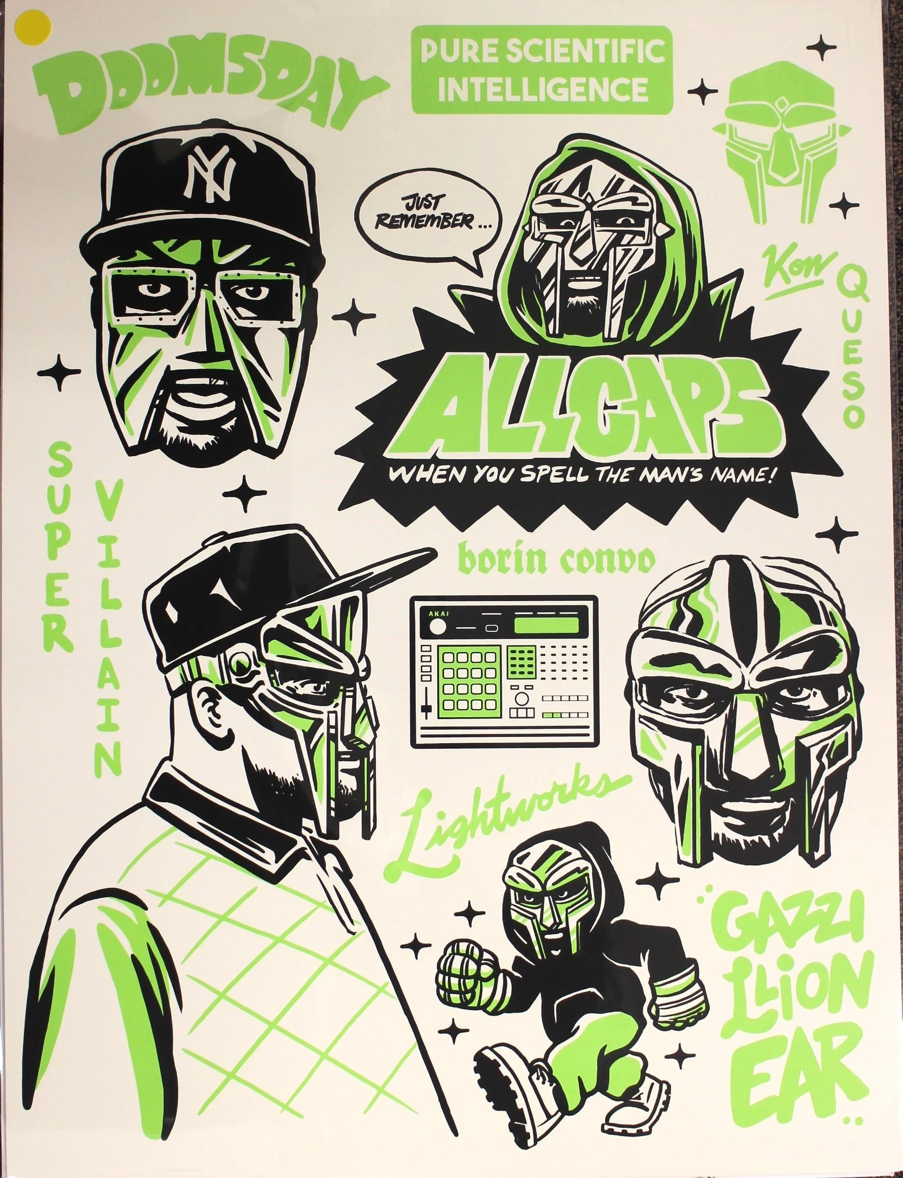 I have built a huge multi-media MF DOOM Art Collection, including 100s of pins, prints from around the world and assorted figures, magnets, stickers, books, comics, and more!